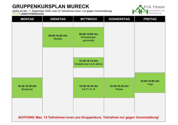 Alle Preise gelten für P.I.N. Fitness Mureck und Halbenrain.